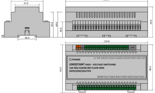 Bộ Switch 09 Kênh và 02 Kênh Dimmer Unisstant – EXP9/2IN9/2OUTIPS