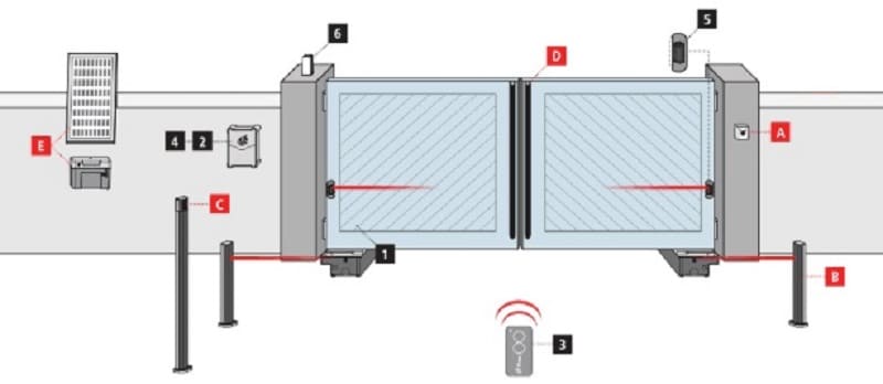Trong hệ thống này có 2 bộ phận quan trọng nhất là bộ điều khiển đóng mở cổng và động cơ. Động cơ có thể chuyển hóa từ điện năng sang cơ năng. Động cơ nhận lệnh từ trung tâm và điều khiển cánh cổng tự động.