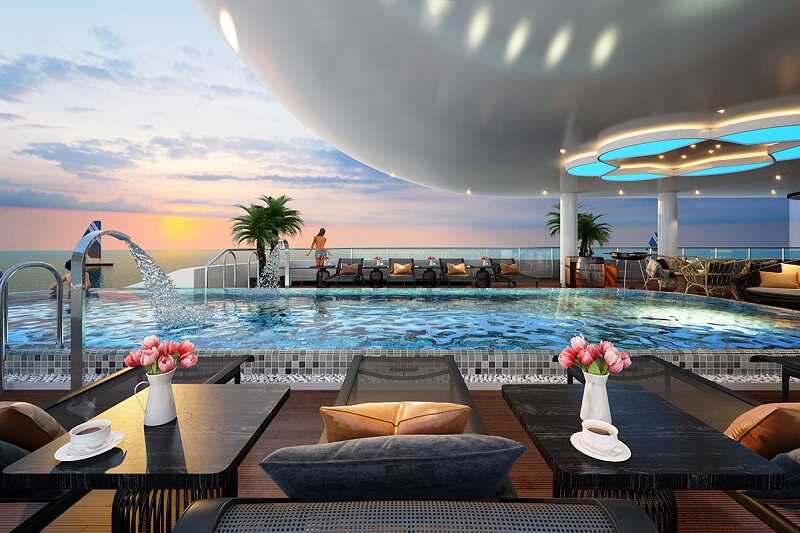 Elite of the Seas là du thuyền 6 sao có bể bơi dát vàng đầu tiên tại Việt Nam được thiết kế dựa trên ý tưởng đương đại mang phong cách sang trọng và tinh túy. Phòng nghỉ đều có cửa kính trong suốt rộng lớn. Hiên tắm nắng riêng tư và bồn tắm ngắm trọn cảnh biển. Cho du khách những phút giây hòa mình vào thiên nhiên và thư giãn. Những món ăn xa xỉ và dịch vụ hiện đại trên tàu Elite of the Seas như sân golf mini, bể bơi ngoài trời, phòng tập thể thao, spa & massage, sauna, quầy bar ngoài trời và trong nhà hàng … sẽ cho du khách những trải nghiệm thật đáng nhớ. Tư vấn thiết kế: P…X…S…Resort